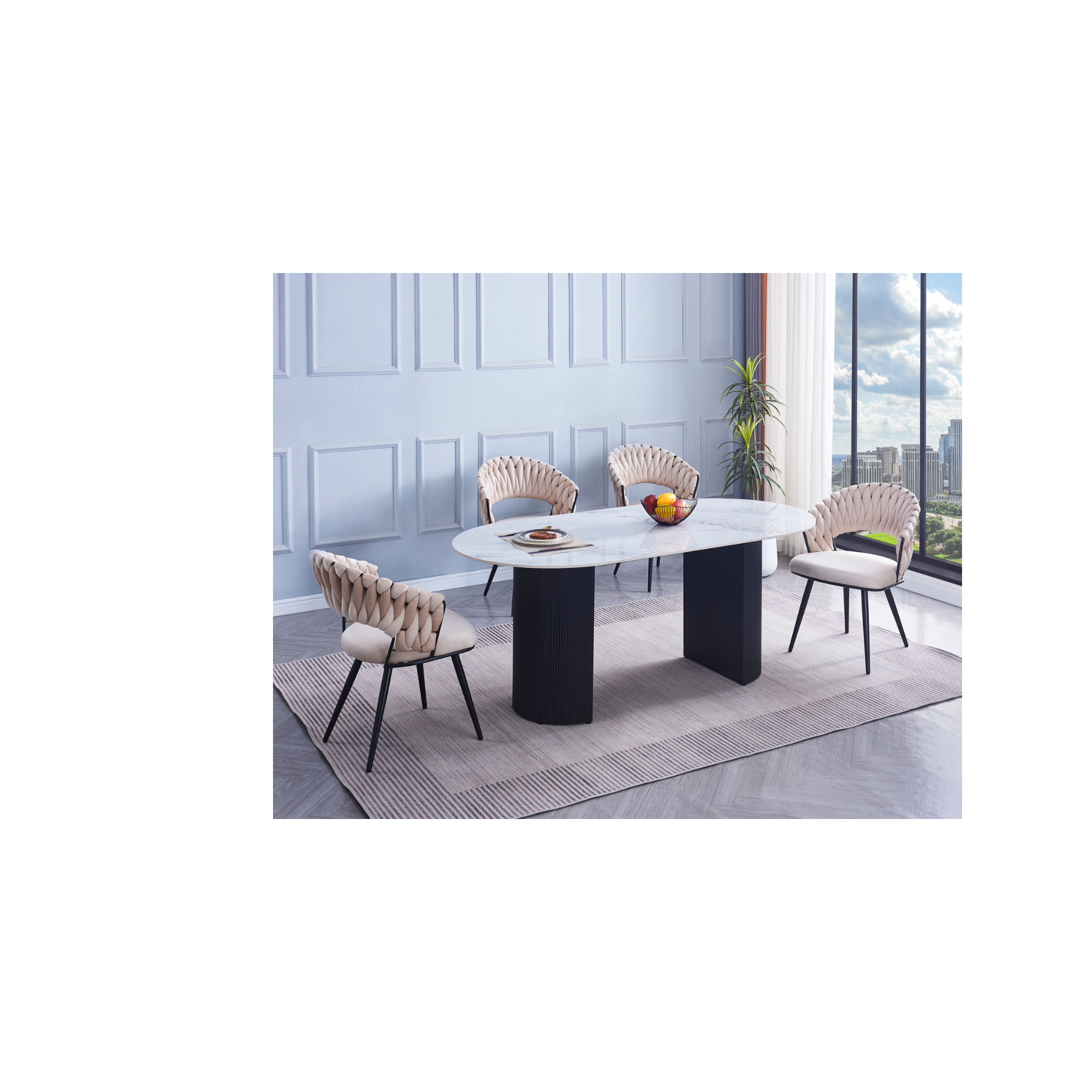 Fauteuil au design épuré avec assise généreuse et tissu texturé beige, reposant sur des pieds fins en métal noir. Parfait pour un intérieur moderne et chaleureux.