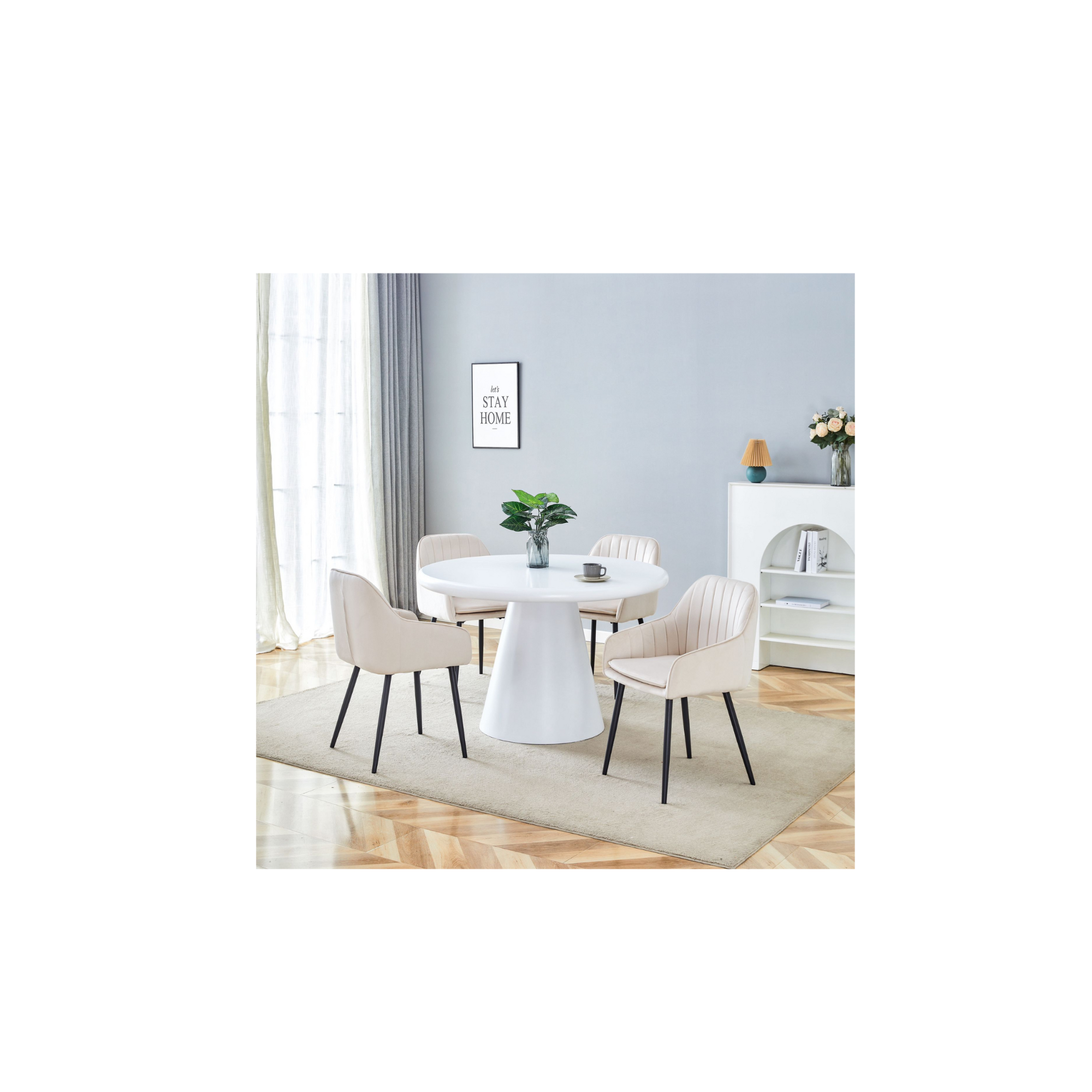 Fauteuil au design épuré avec assise généreuse et tissu texturé beige, reposant sur des pieds fins en métal noir. Parfait pour un intérieur moderne et chaleureux.