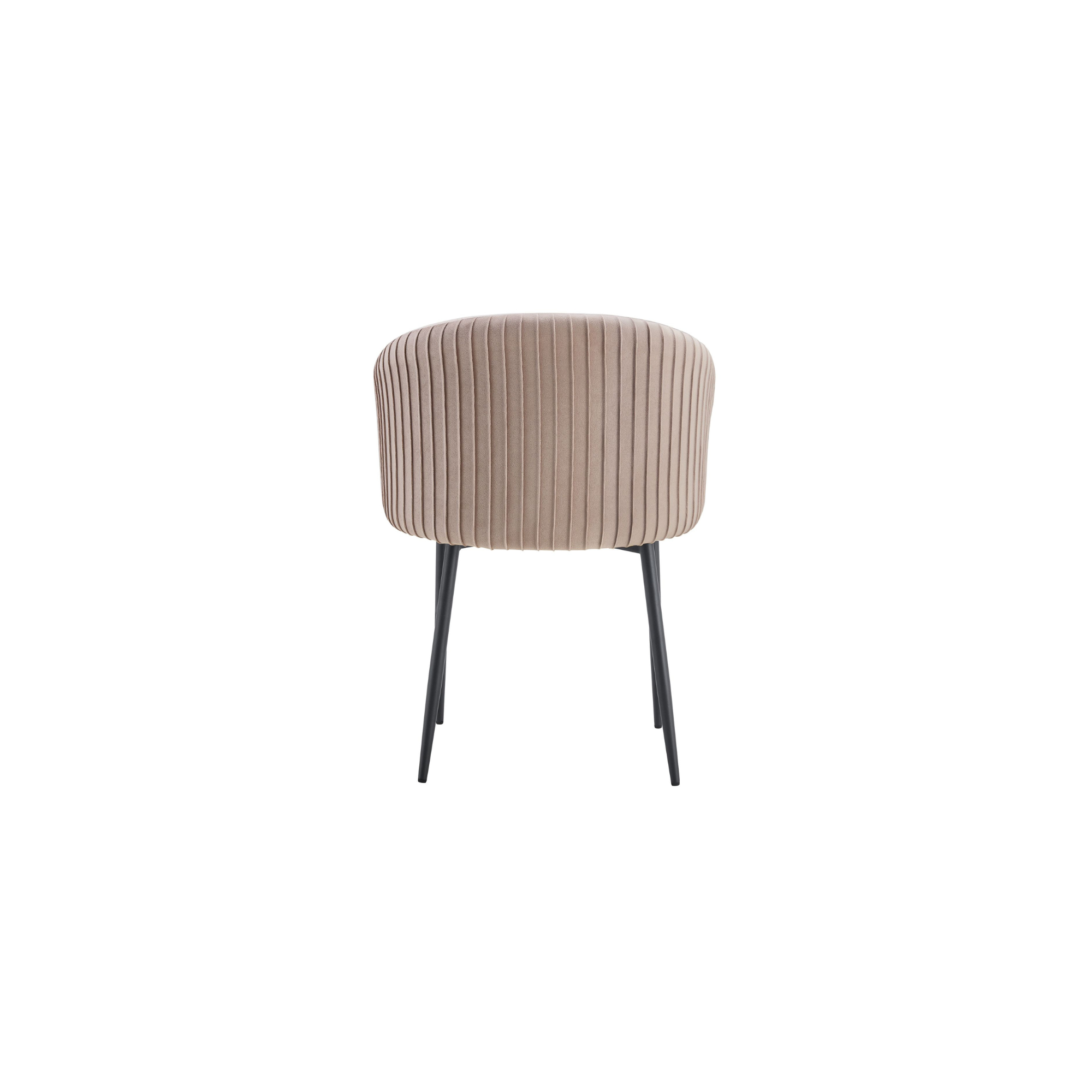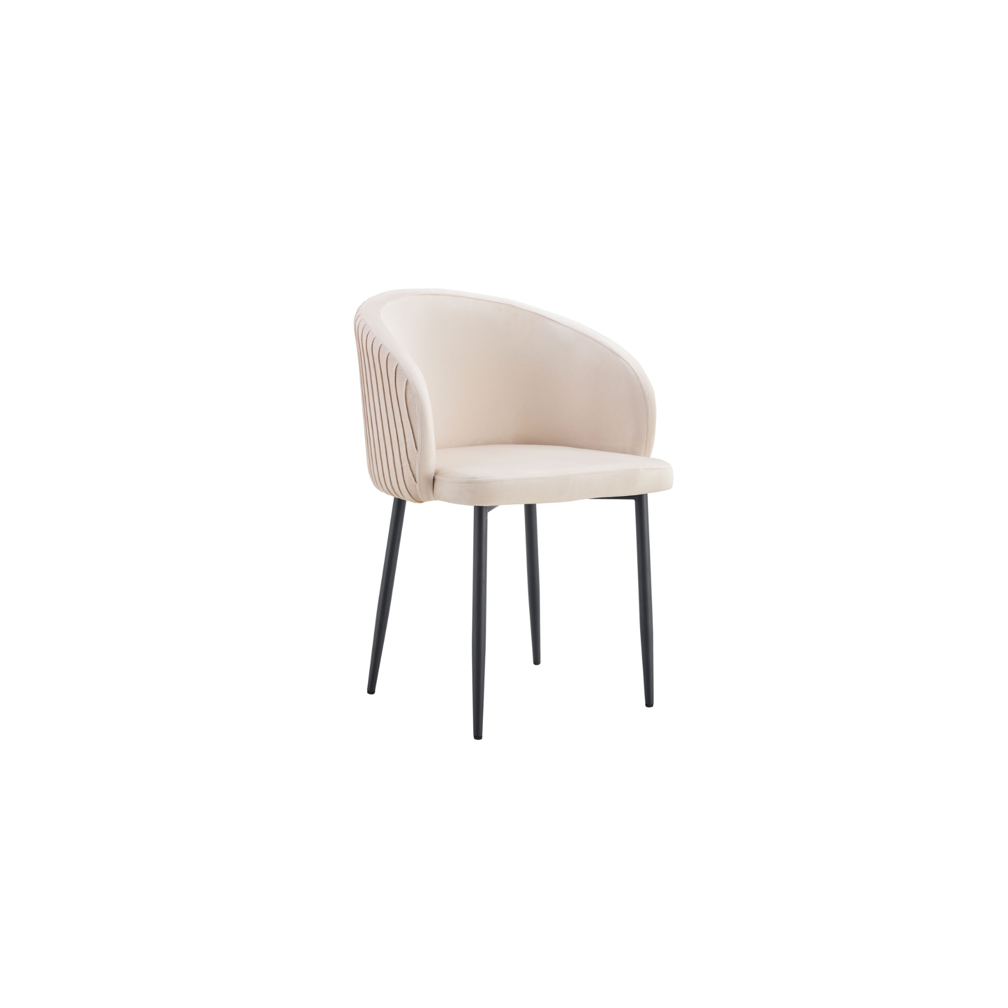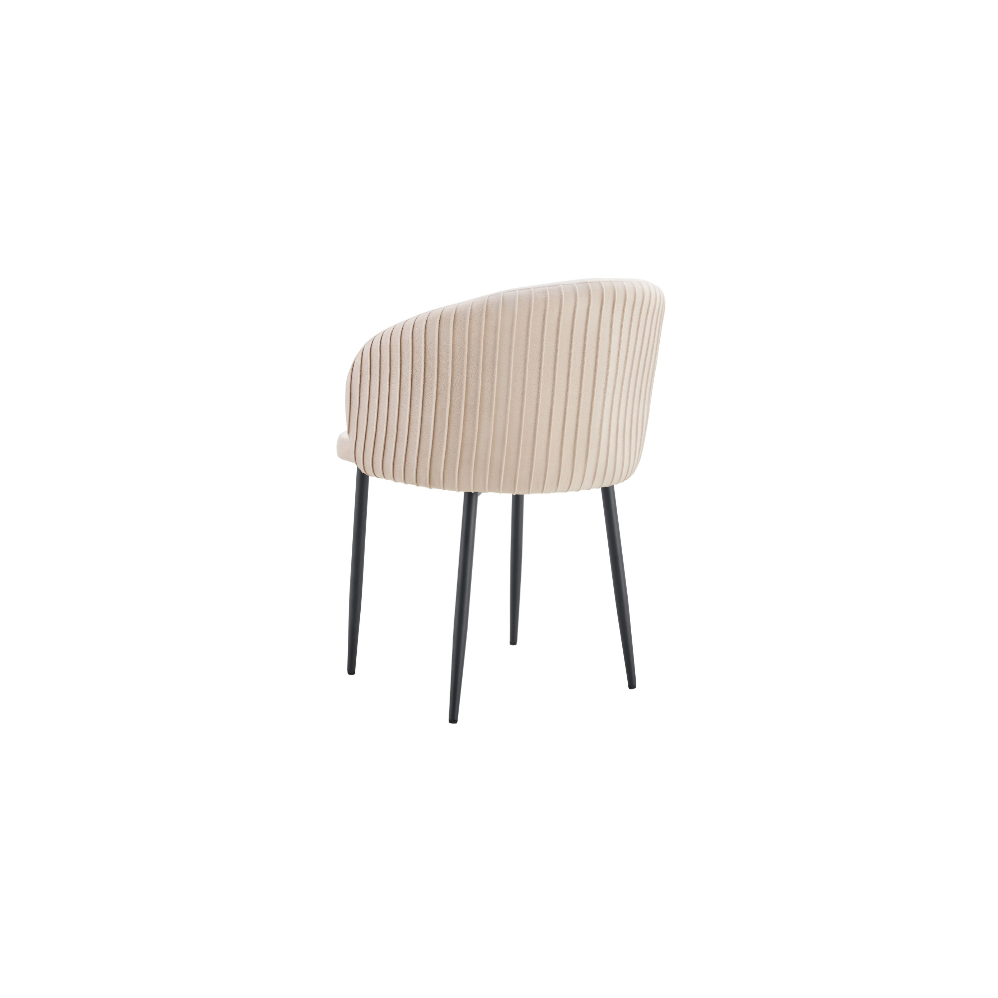 Fauteuil au design épuré avec assise généreuse et tissu texturé beige, reposant sur des pieds fins en métal noir. Parfait pour un intérieur moderne et chaleureux.