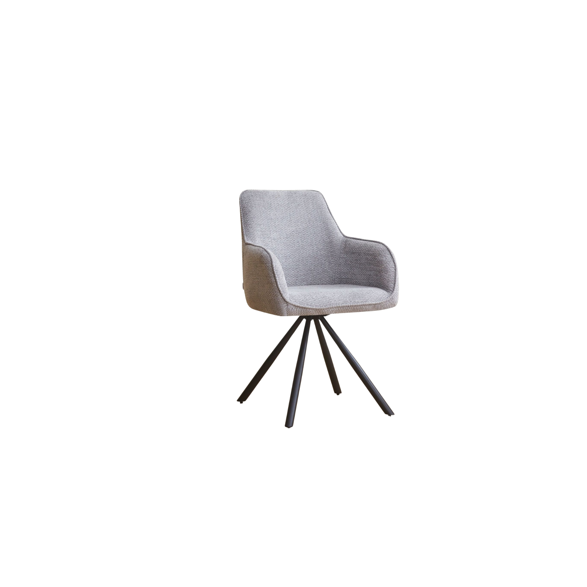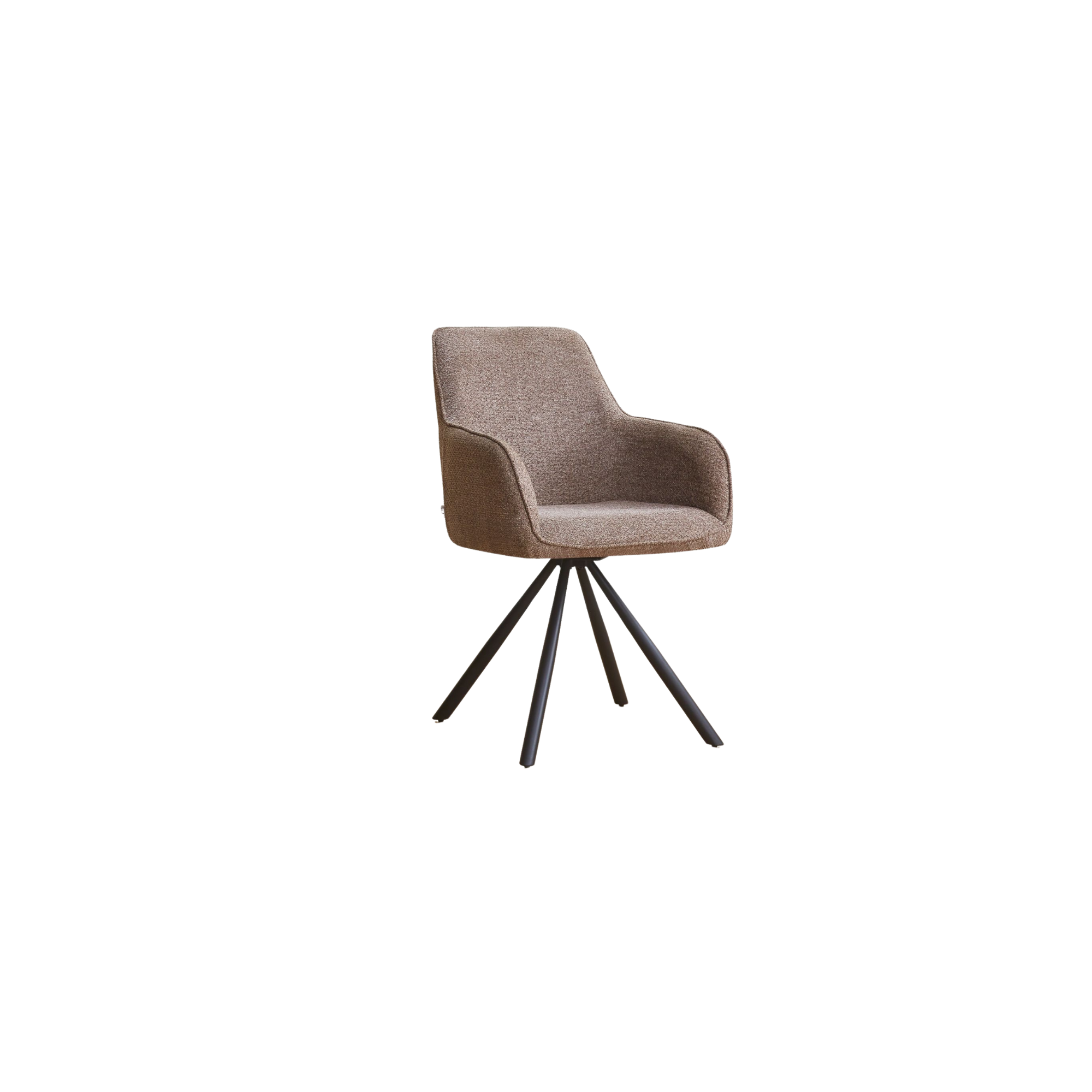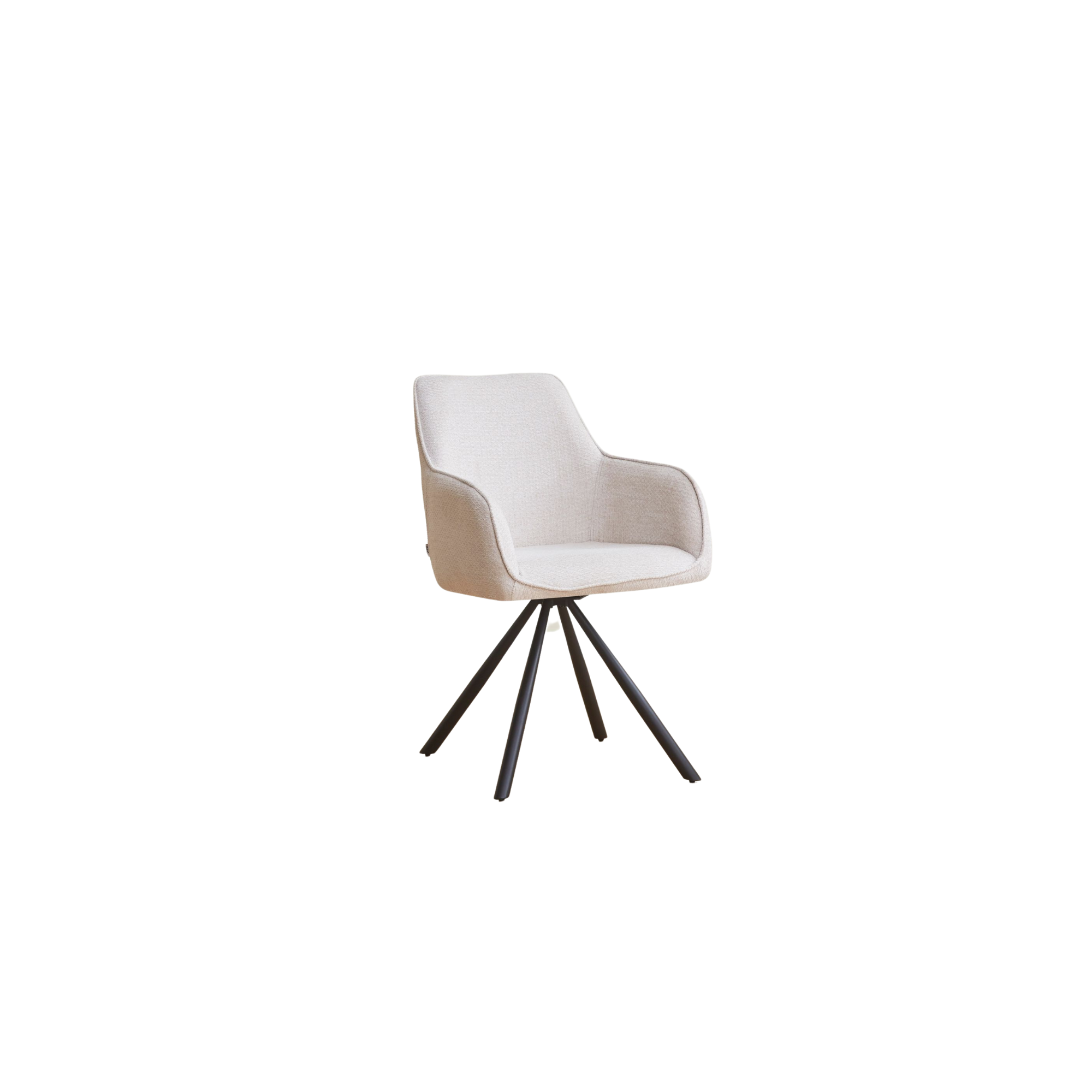 Fauteuil au design épuré avec assise généreuse et tissu texturé beige, reposant sur des pieds fins en métal noir. Parfait pour un intérieur moderne et chaleureux.