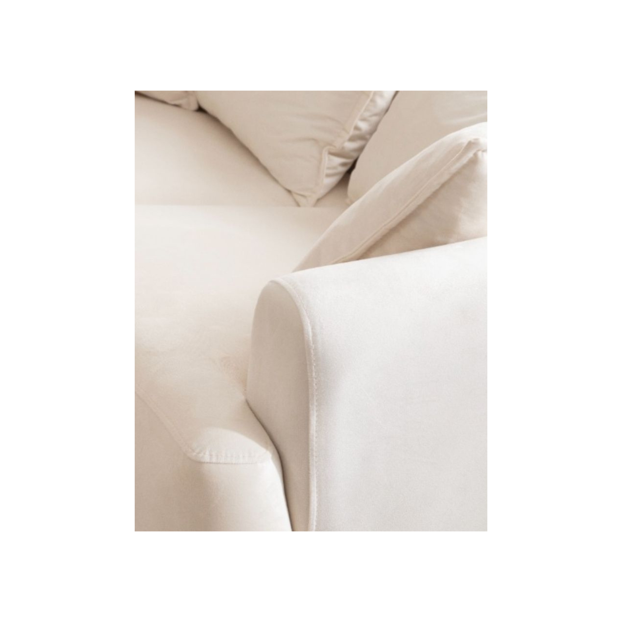 Fauteuil au design épuré avec assise généreuse et tissu texturé beige, reposant sur des pieds fins en métal noir. Parfait pour un intérieur moderne et chaleureux.