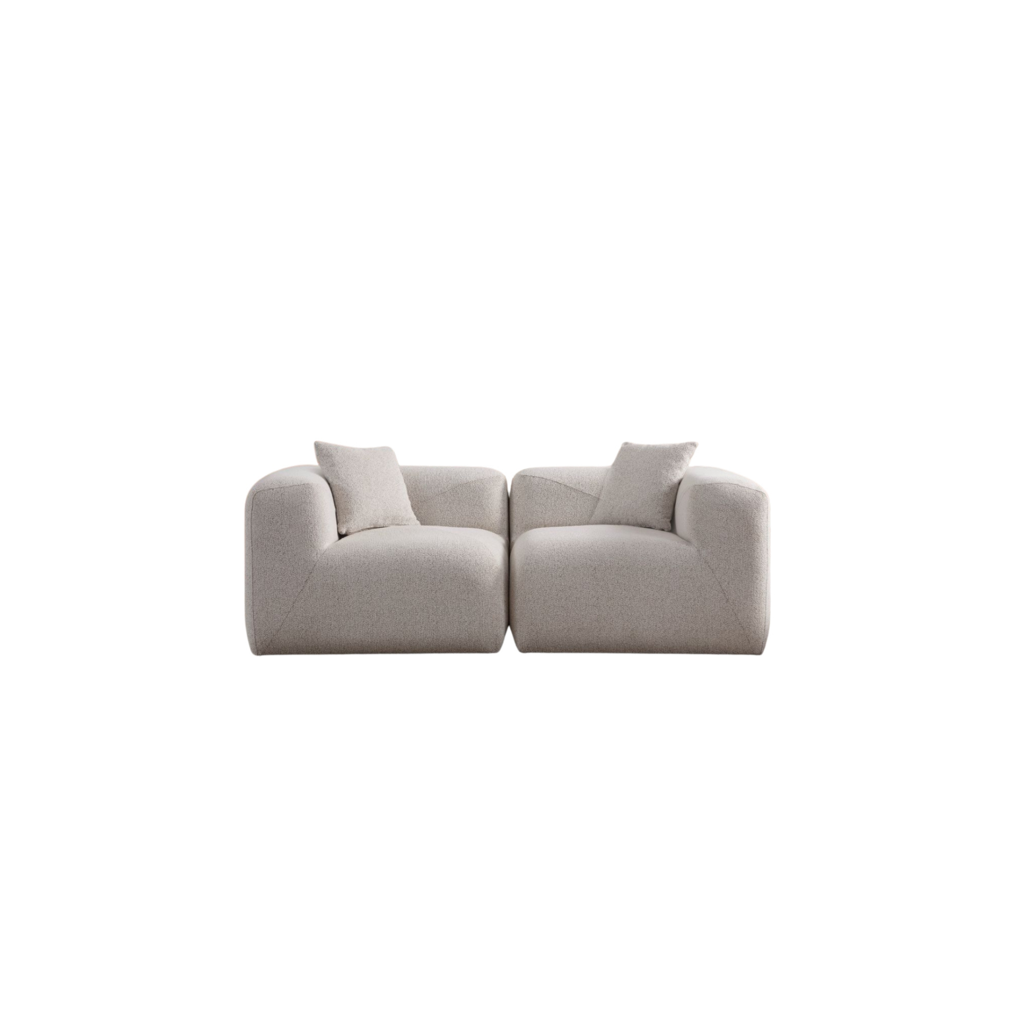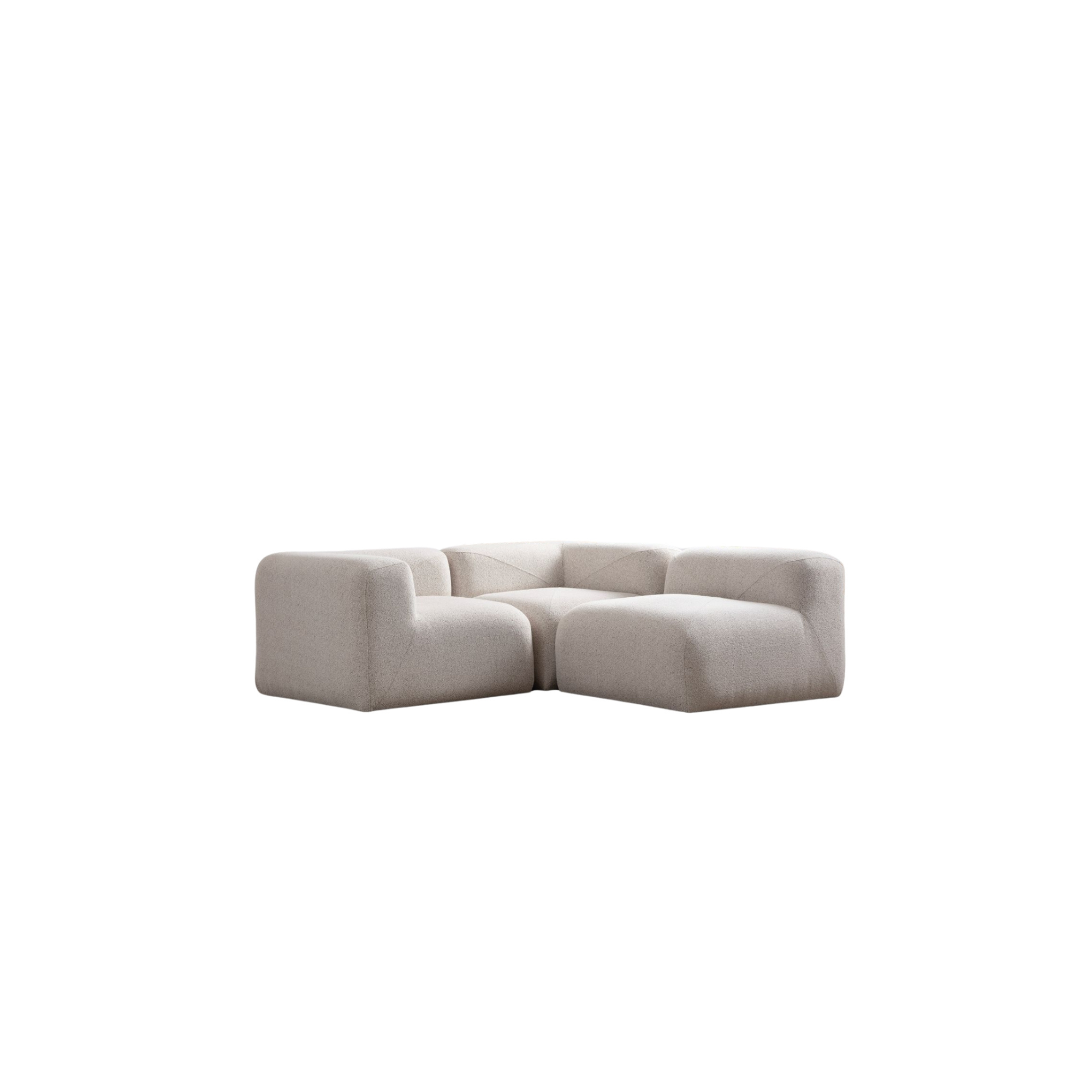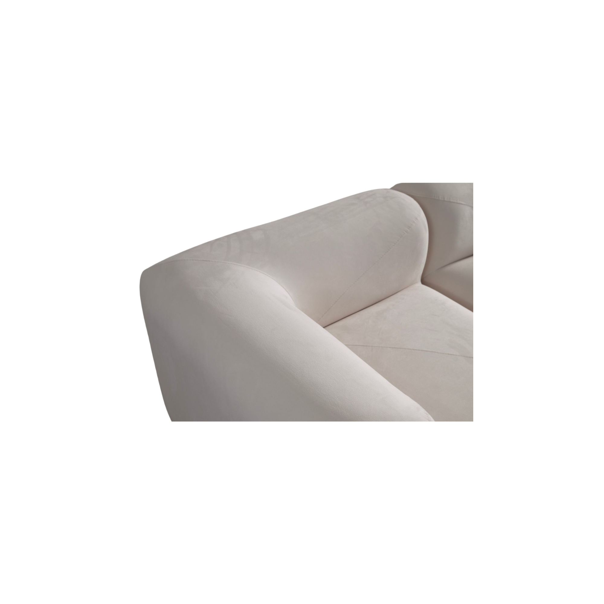 Fauteuil au design épuré avec assise généreuse et tissu texturé beige, reposant sur des pieds fins en métal noir. Parfait pour un intérieur moderne et chaleureux.