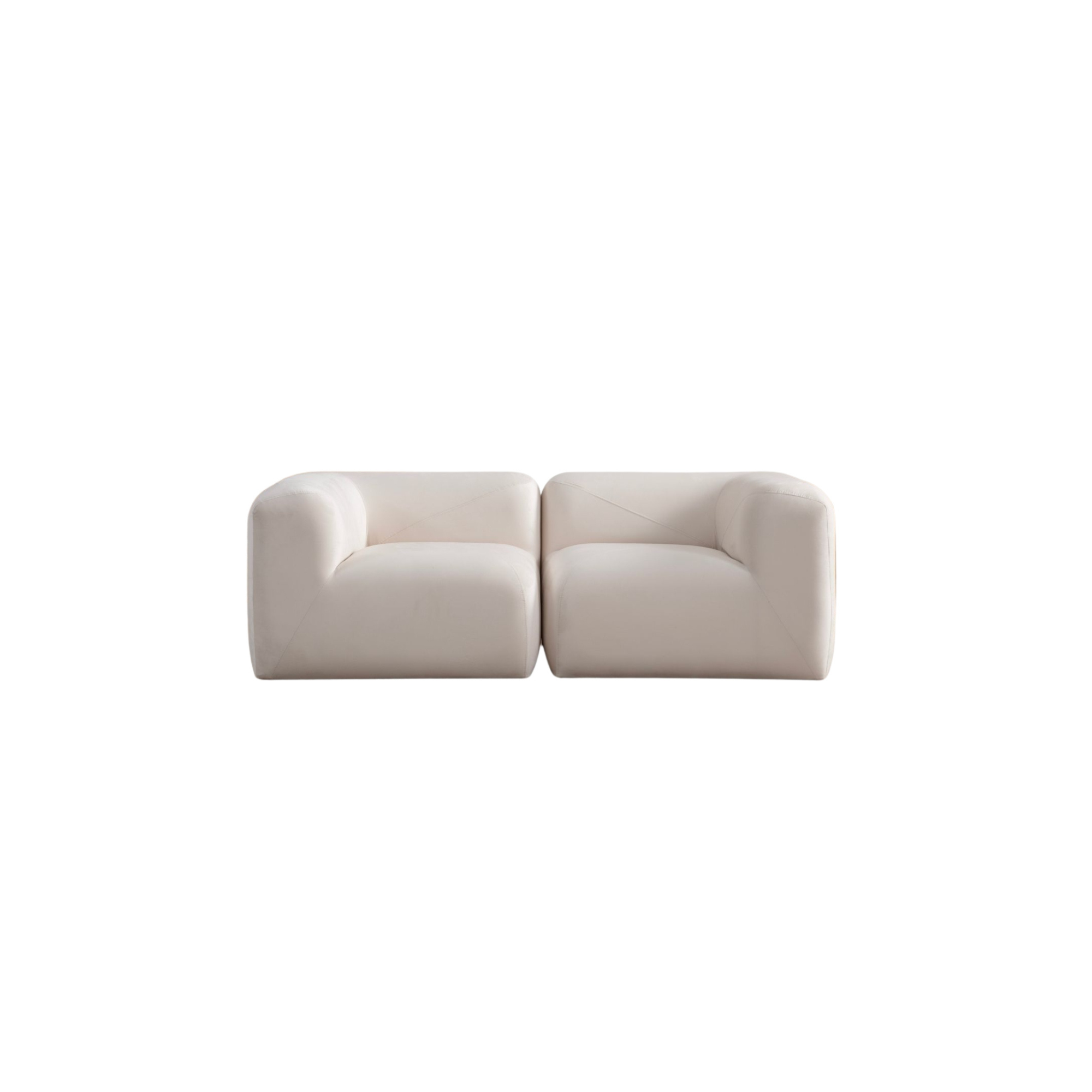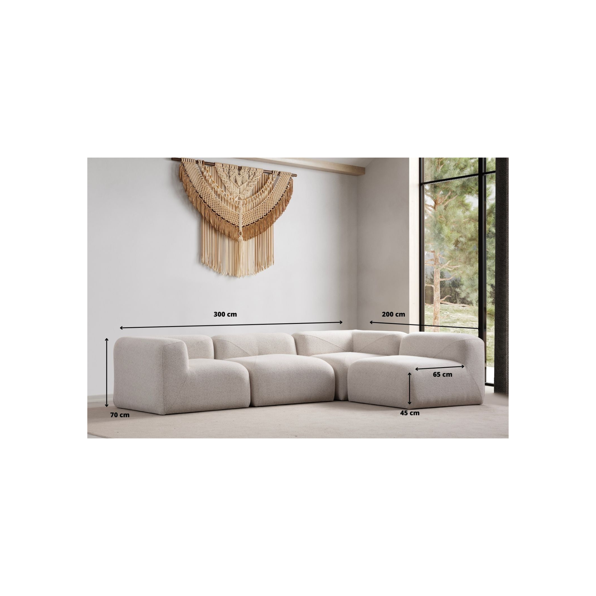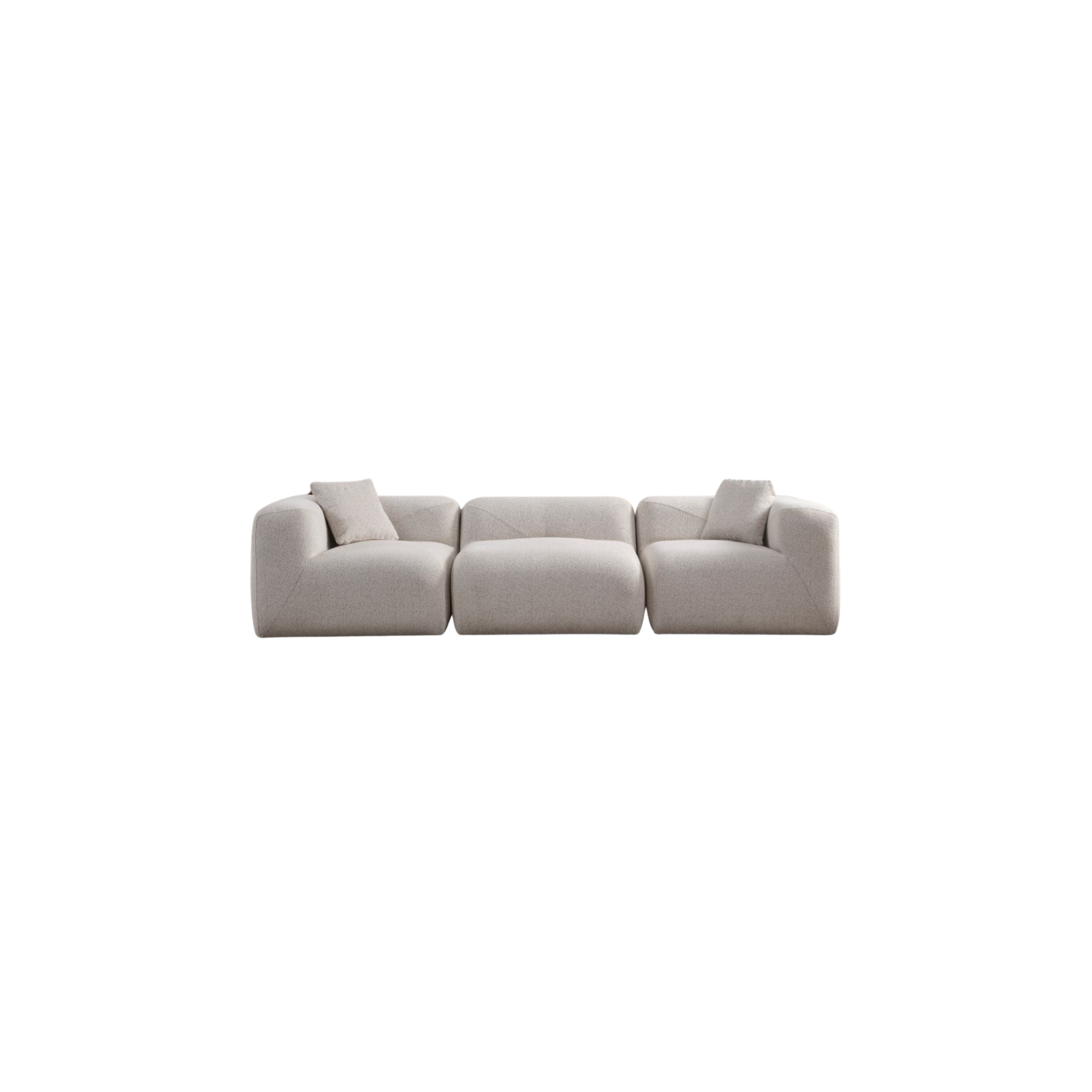 Fauteuil au design épuré avec assise généreuse et tissu texturé beige, reposant sur des pieds fins en métal noir. Parfait pour un intérieur moderne et chaleureux.